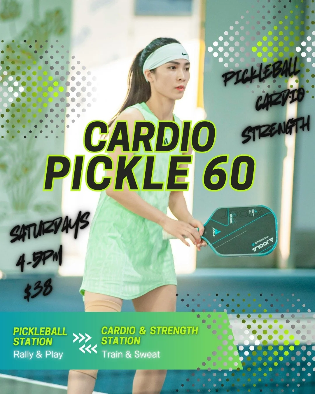 Cardio Pickle 60 is a high-movement, coach-supervised session designed to get you sweating while training the muscles and movement patterns that matter in pickleball. You’ll rotate between two stations every 10 minutes — one focused on pickleball rallying, and one focused on cardio + strength work.